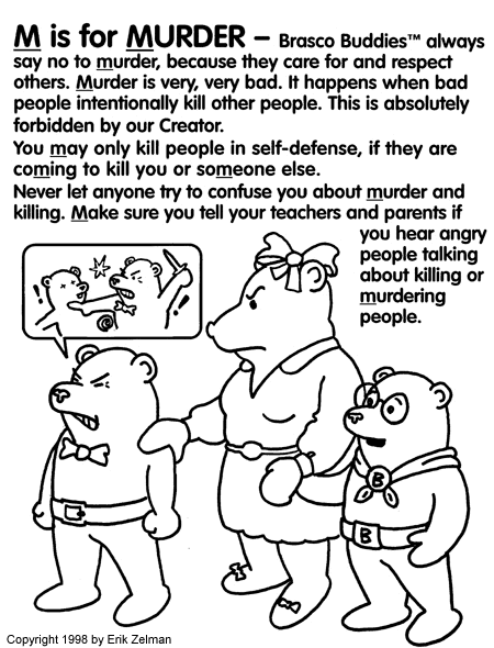 [ JPFO Home > Books & Booklets > Brasco (TM) The Liberty Bear Coloring/Story Book > M is for MURDER ]